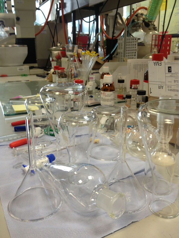 They are exactly as I imagined them to be. They are littered with test tubes, clonical flasks and large scientific experiments .On the walls are chemical structure diagrams and chemical equations.